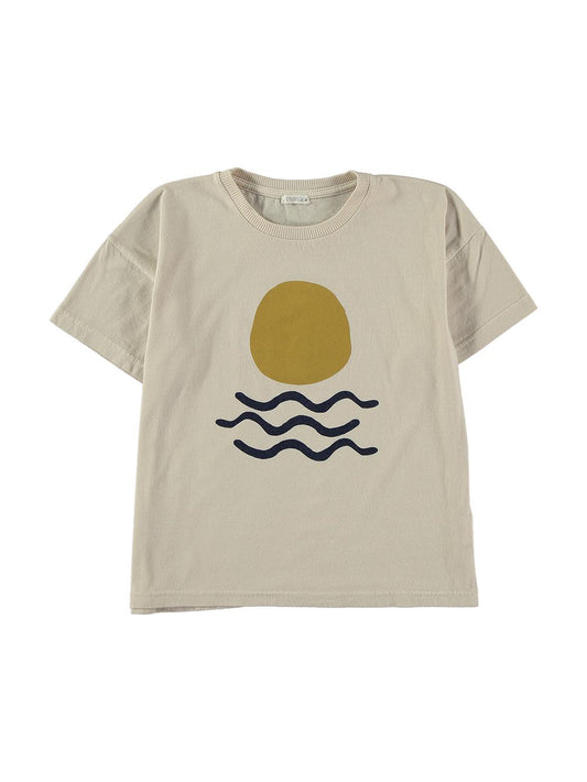 Camiseta manga corta para niño beige con estampado sol y mar