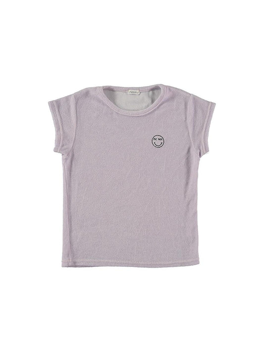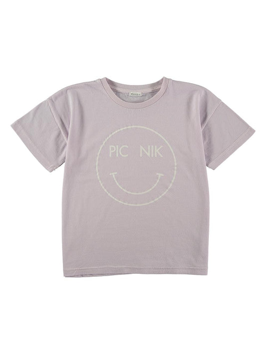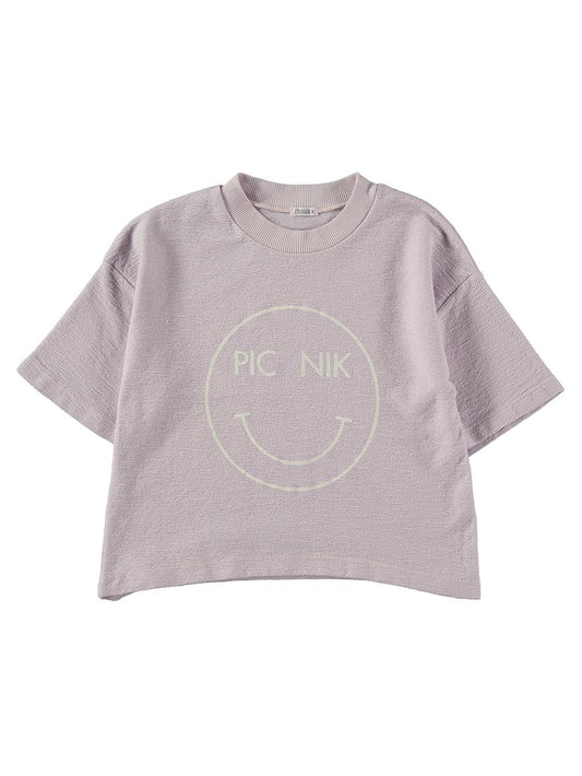 Camiseta manga corta para niña lila con estampado smile