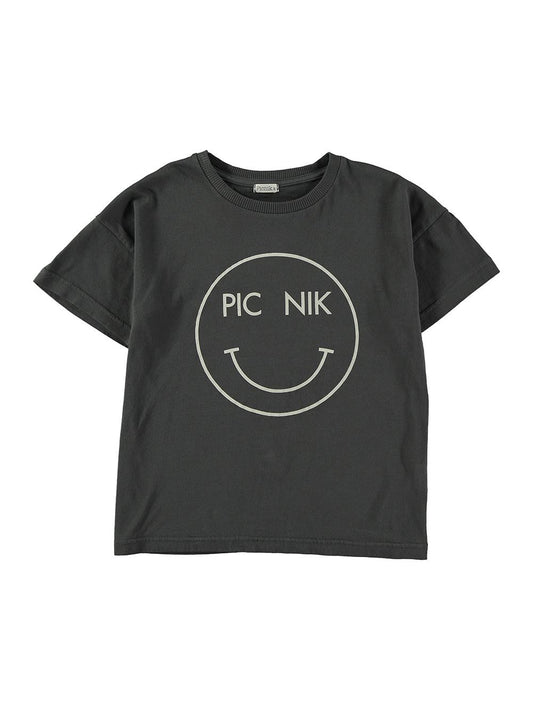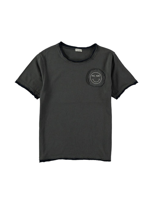 Camiseta manga corta para niño gris oscuro con estampado smile