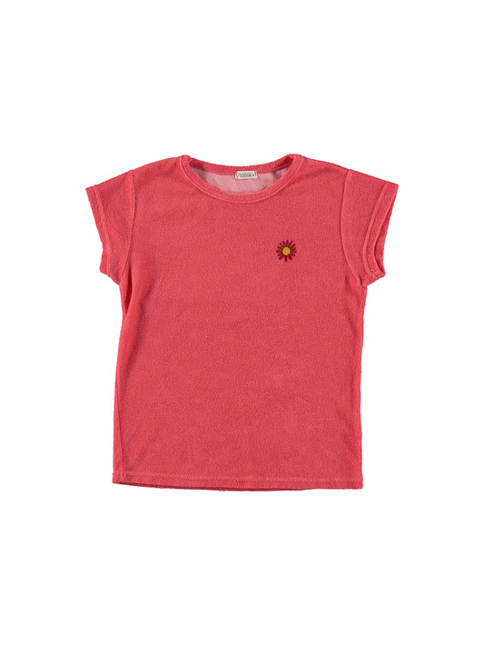 CAMISETA EN RIZO BORDADO CEREZAS SALMÓN