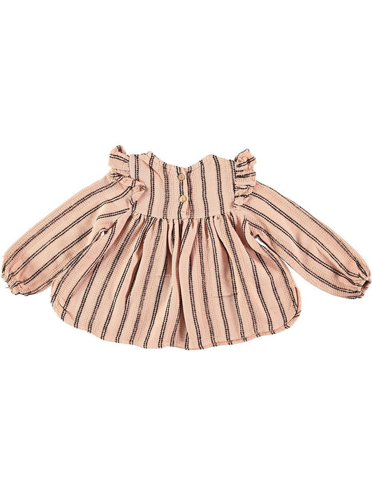 CAMISA VOLANTES RAYAS NEGRO Y ROSA