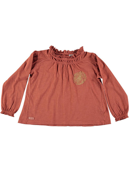 CAMISA CALDERA BORDADO ROSA DORADA