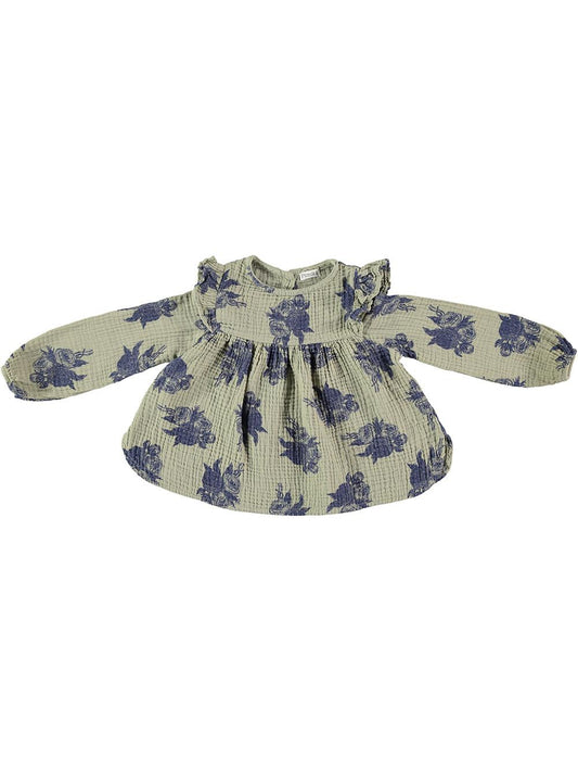 CAMISA VOLANTES ESTAMPADO FLORES ANTIGUAS VERDE