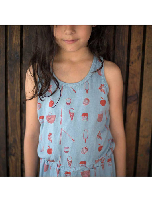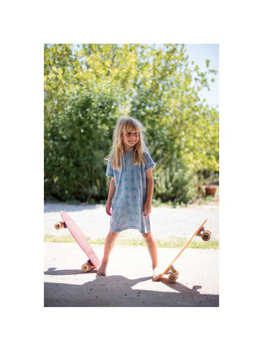 Vestido de niña azul estampado con Sol