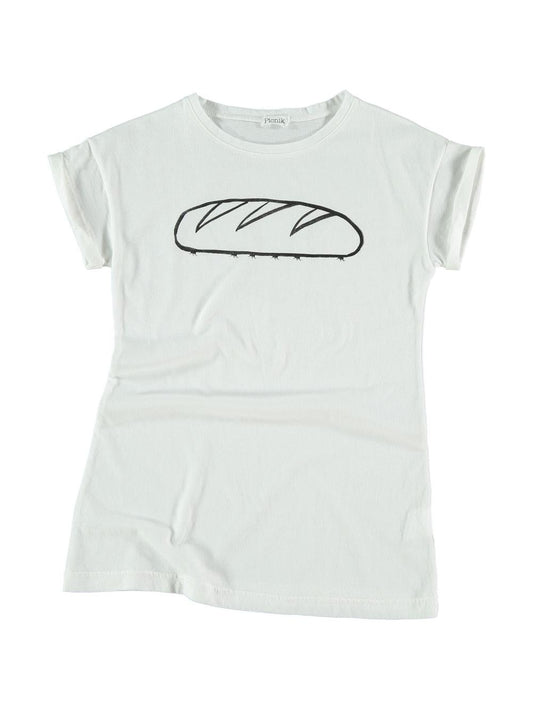 Vestido de niña blanco con estampado de barra pan