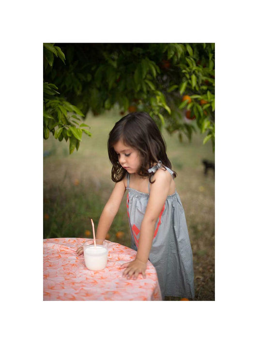 VESTIDO ESTAMPADO CEREZAS FLEQUILLO SALMÓN