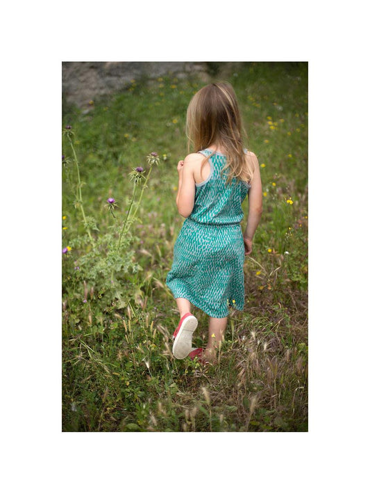 VESTIDO VOLANTES ESTAMPADO COLMENA VERDE