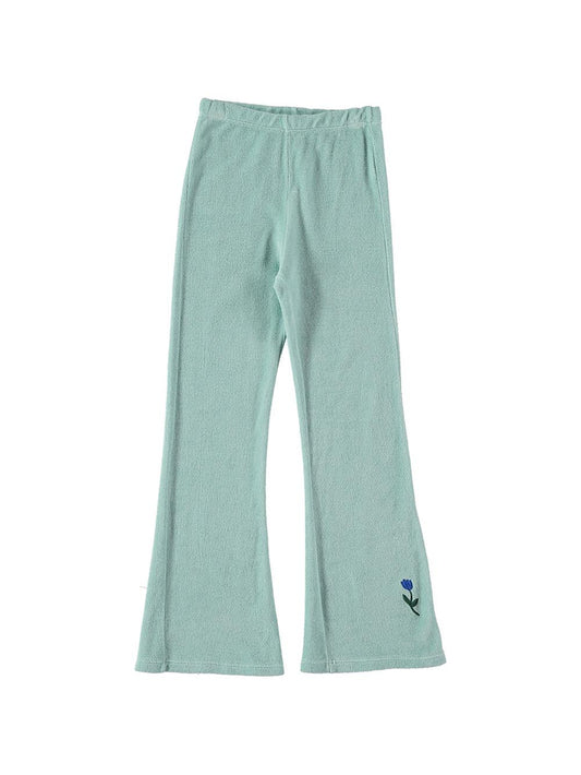 PANTALÓN LARGO NIÑA AZUL CLARO ACAMPANADO BORDADO FLOR