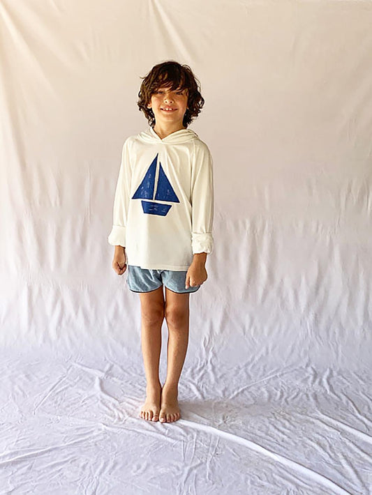 PANTALÓN CORTO VOLANTES ESTAMPADO PECES Y SOMBREROS AZUL