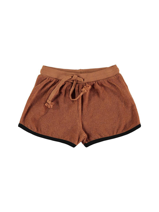 PANTALÓN CORTO MARRÓN CON CORDÓN Y RIBETE NEGRO