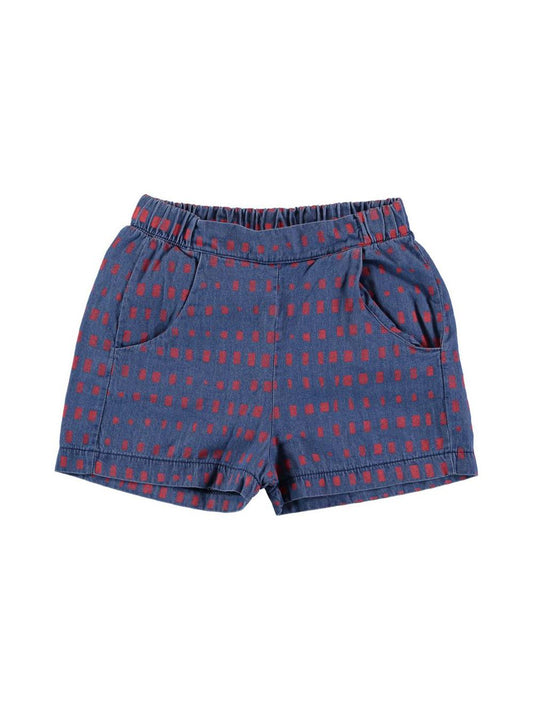 PANTALÓN CORTO ESTAMPADO RECTÁNGULOS DENIM