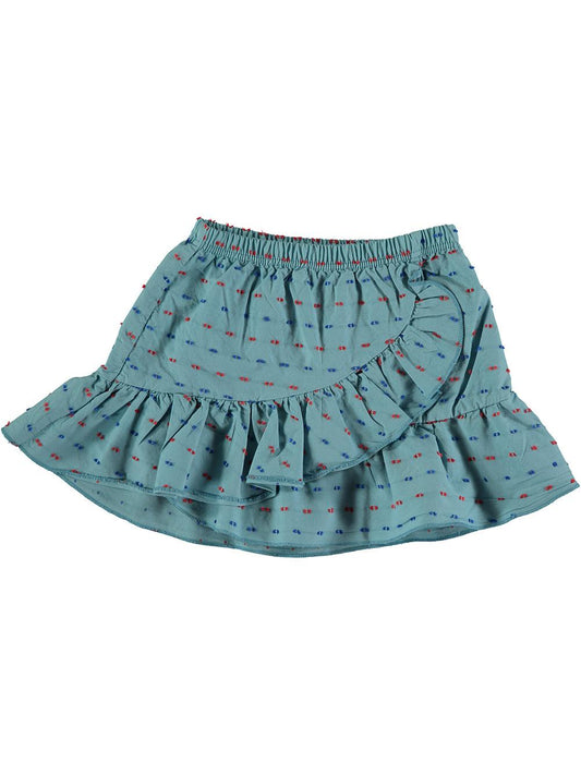 FALDA AZUL ESTAMPADO FLORES ROJAS