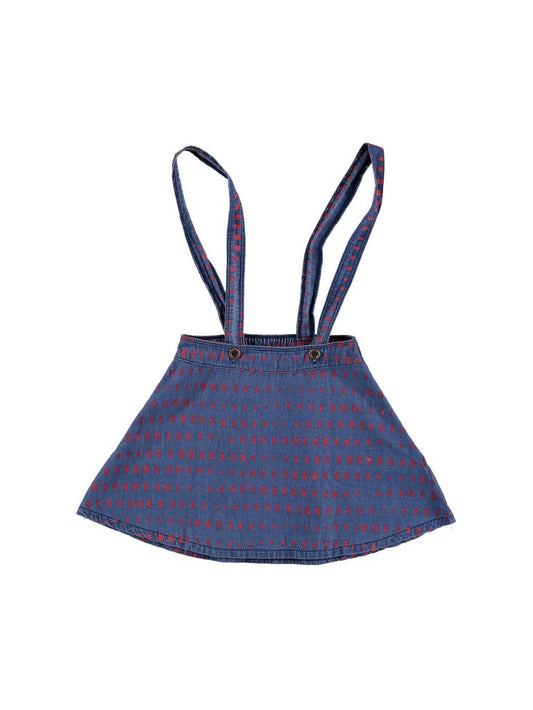 FALDA CON TIRANTES ESTAMPADO RECTÁNGULOS DENIM