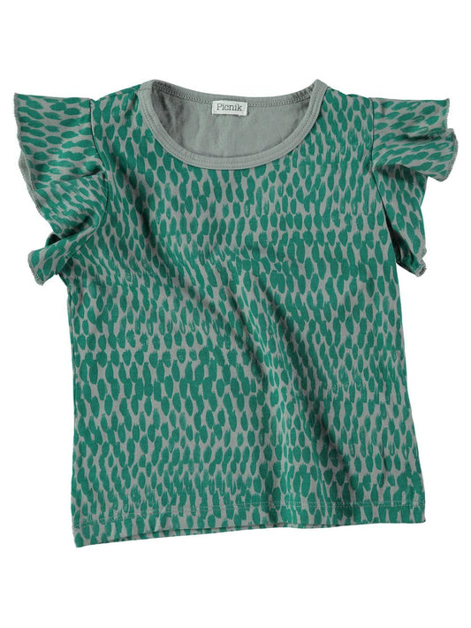 CAMISETA VOLANTES ESTAMPADO ANIMAL PRINT GRIS