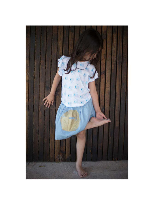 CAMISETA VOLANTES ESTAMPADO GATOS Y PECES BLANCO