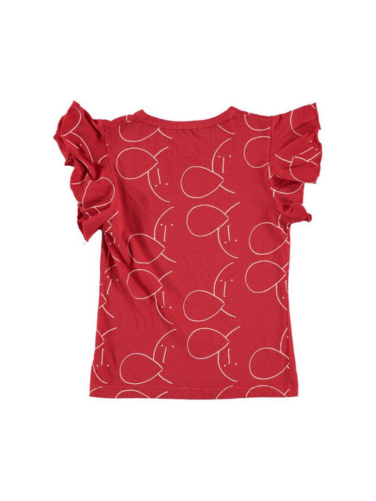 CAMISETA VOLANTES ESTAMPADO CARAS Y GLOBOS ROJA