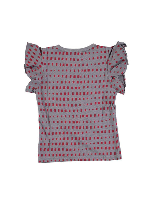 CAMISETA VOLANTES ESTAMPADO RECTÁNGULOS GRIS