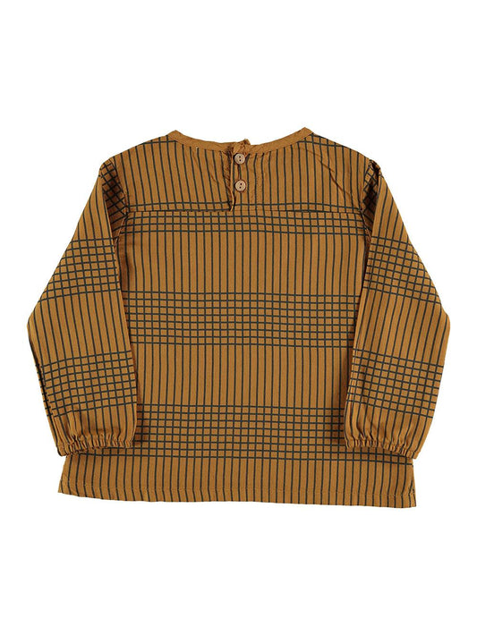 BLUSA MANGA LARGA CAMEL RAYAS NEGRAS