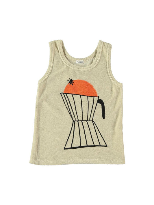 CAMISETA TIRANTES CAFETERA Y NARANJA EN RIZO BLANCO ROTO