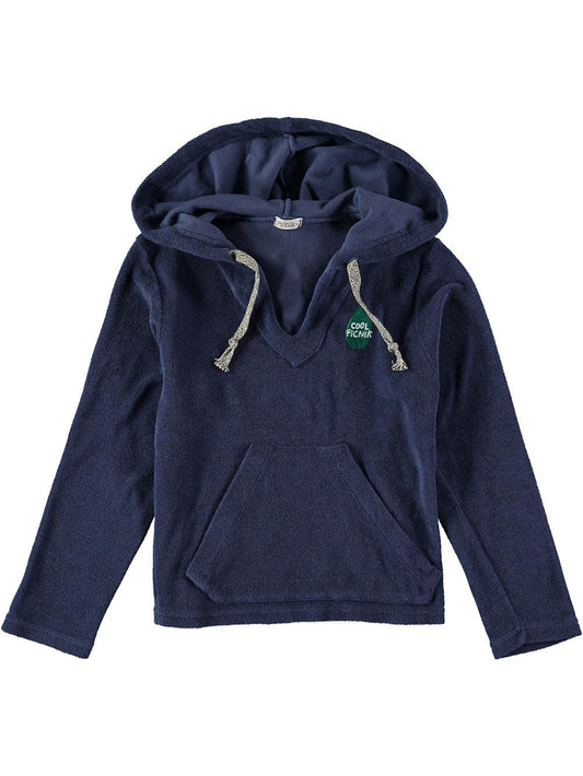 SUDADERA EN RIZO CAPUCHA BORDADO PERA AZUL MARINO