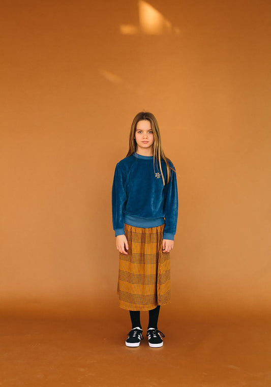 JERSEY TERCIOPELO BORDADO FLOR AZUL