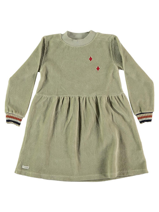 VESTIDO TERCIOPELO BORDADO ROMBOS VERDE