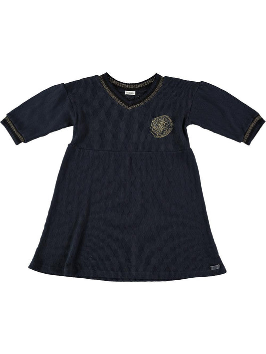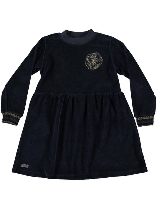 VESTIDO MANGA LARGA AZUL MARINO BORDADO FLOR NIEVE