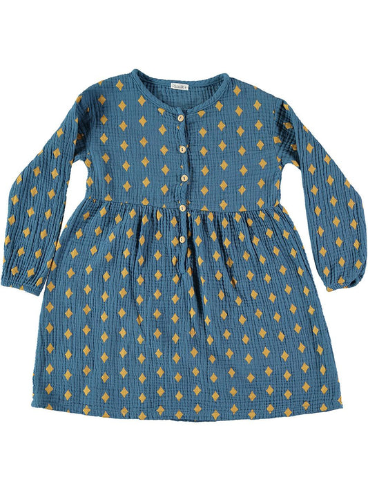 VESTIDO MANGA LARGA ESTAMPADO ROMBOS AZUL