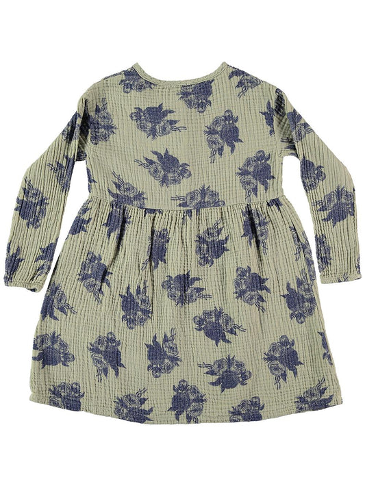 VESTIDO MANGA LARGA ESTAMPADO FLORES ANTIGUAS VERDE