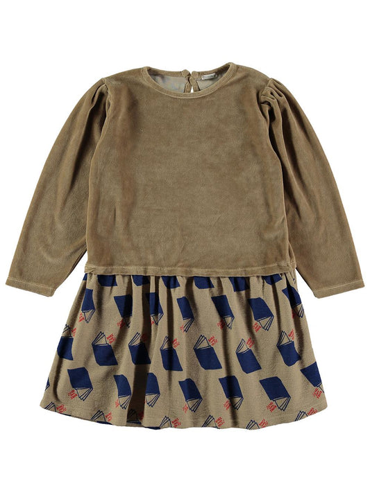 CAMEL BOOK PRINT COMBINED VELVET DRESS