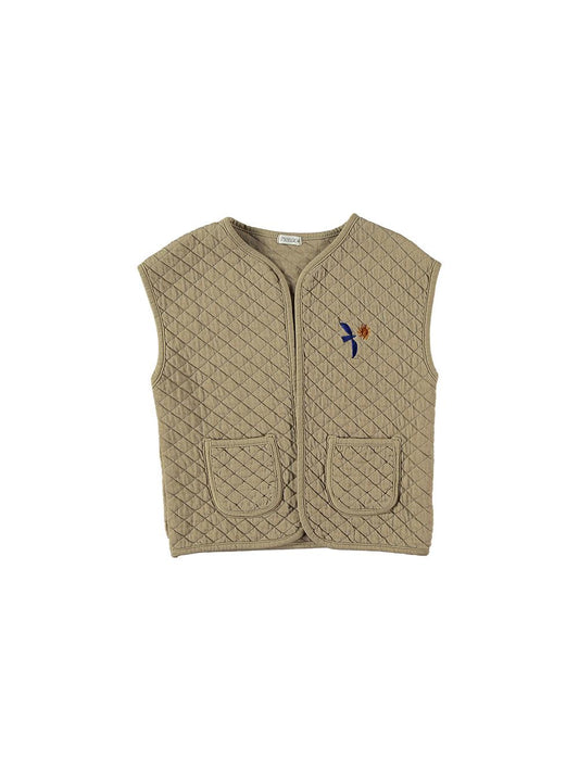 CAMEL QUILTED VEST WITH FLOWER EMBROIDERY