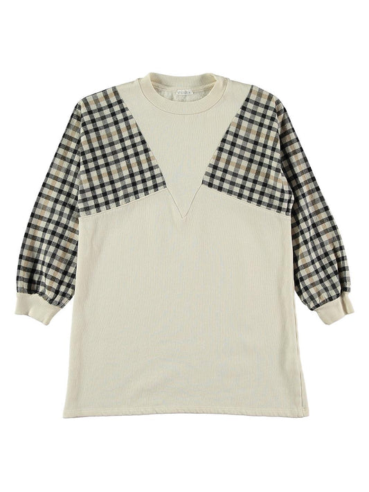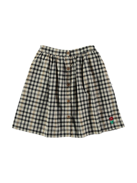 MULTICOLOR CHECKED SKIRT WITH FLOWER EMBROIDERY
