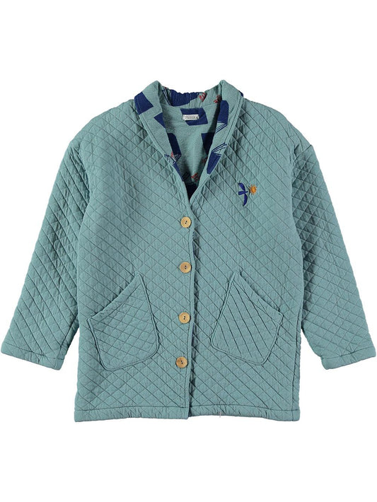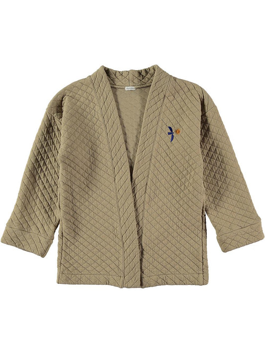 CAMEL QUILTED KIMONO WITH BIRD AND SUN EMBROIDERY