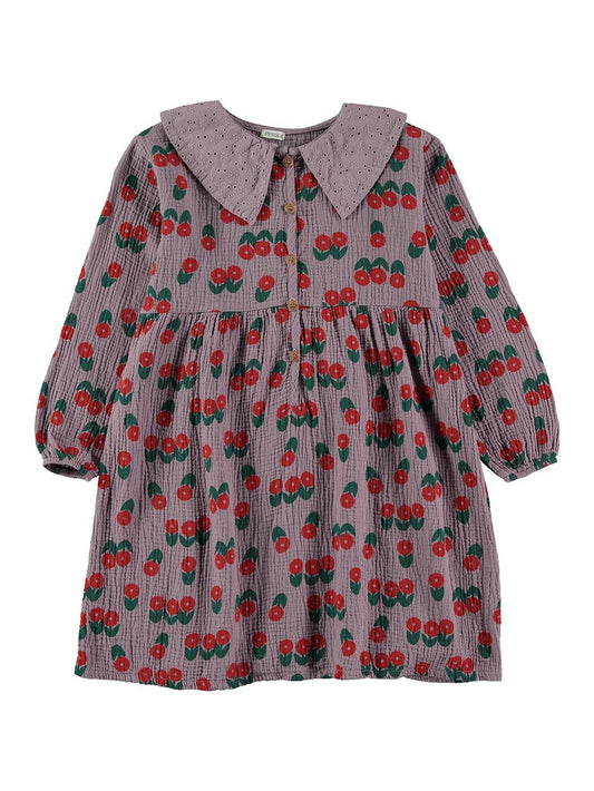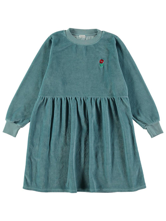 BLUE FLOWER EMBROIDERED VELVET DRESS