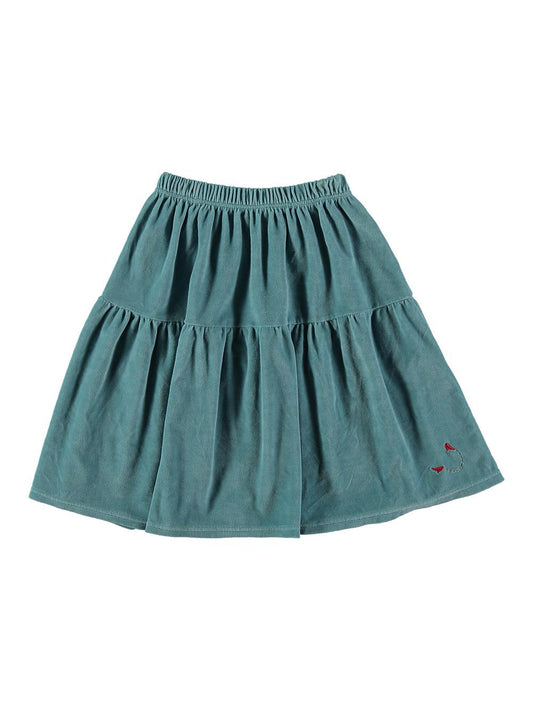 CAMEL VELVET SKIRT WITH BIRD AND SUN EMBROIDERY