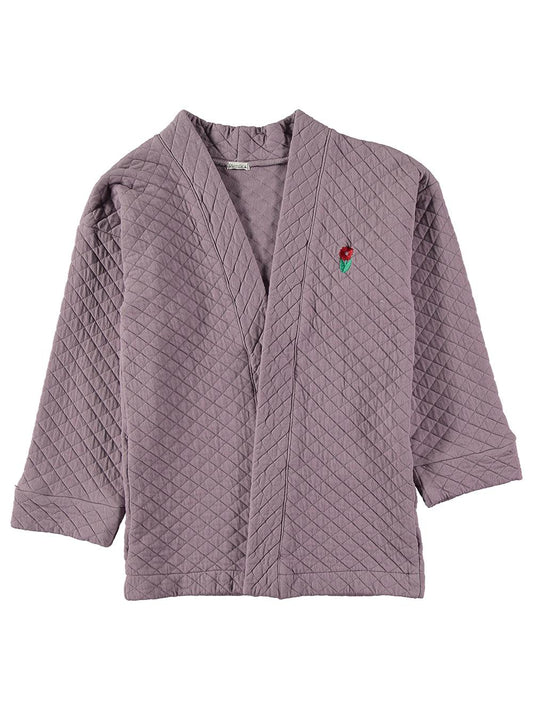 LILAC QUILTED KIMONO WITH FLOWER EMBROIDERY