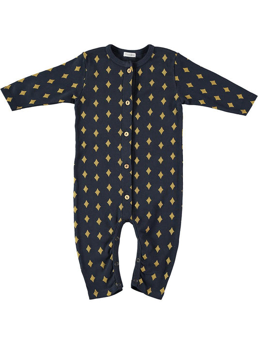 LONG JUMPSUIT WITH NIGHT BLUE RHOMBUS PRINT