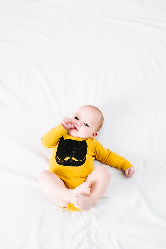 YELLOW MUSTACHE CAT LONG SLEEVE BODYSUIT
