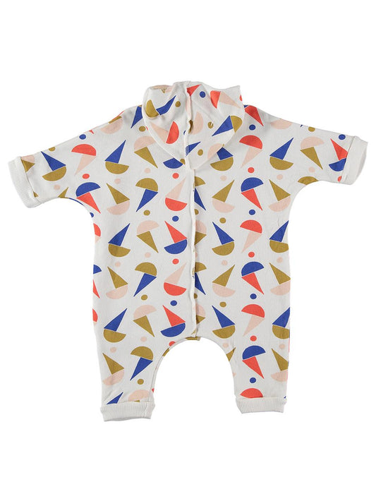 WHITE SUNS BOAT PRINT BABY OVERALL