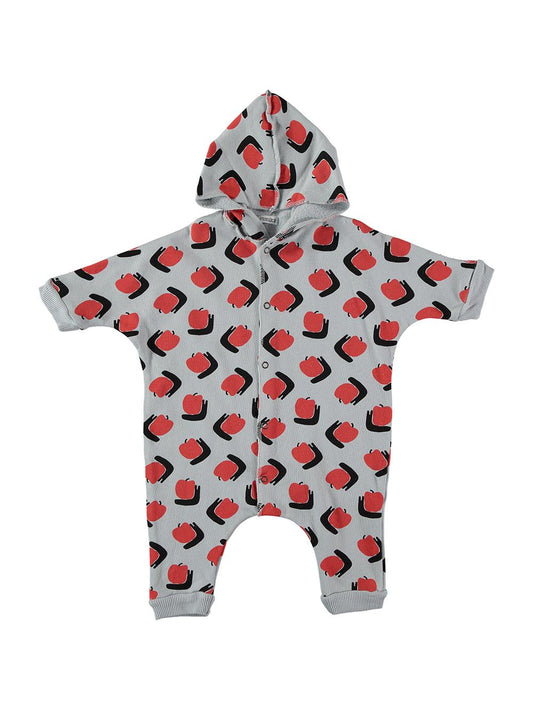GRAY APPLE SNAIL PRINT HOODED JUMPSUIT