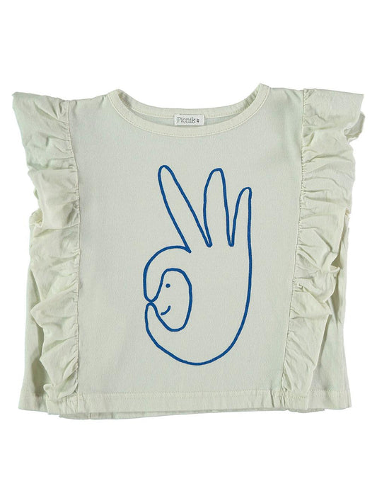 WHITE HAND FACE RUFFLE CROPPED T-SHIRT