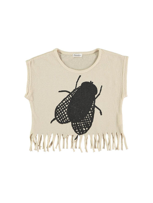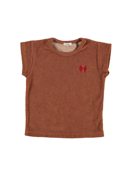 BROWN BUTTERFLY EMBROIDERY TERRY T-SHIRT