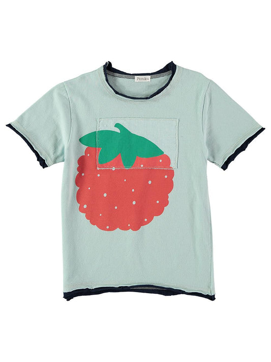 LIGHT BLUE STRAWBERRY CONTRAST COLLAR T-SHIRT