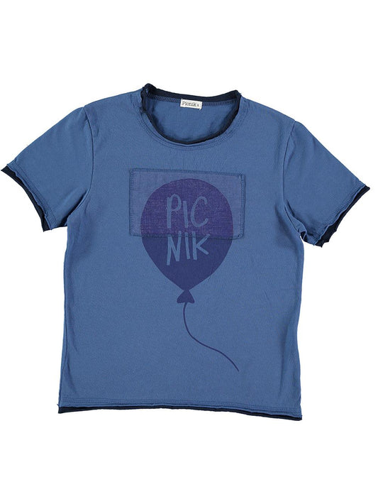 NAVY BLUE PICNIK BALLOON CONTRAST NECK T-SHIRT