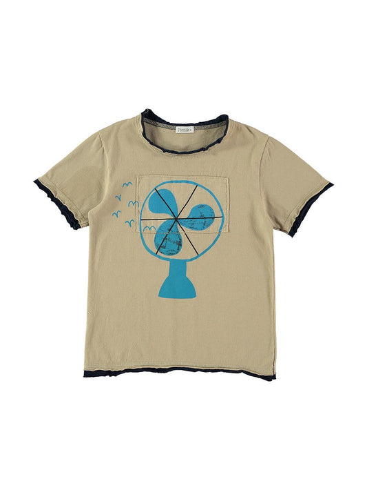 T-SHIRT PRINTED BOATS AND TREES CAMEL