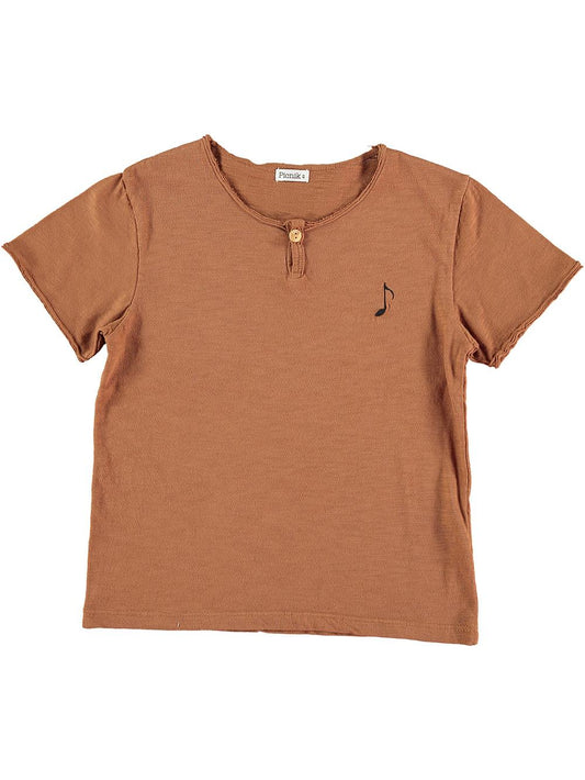 BROWN NOTE EMBROIDERED BAKER NECK T-SHIRT