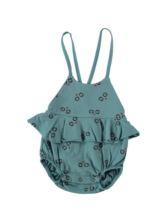 LIGHT BLUE OWL PRINTED RUFFLED BODYSUIT