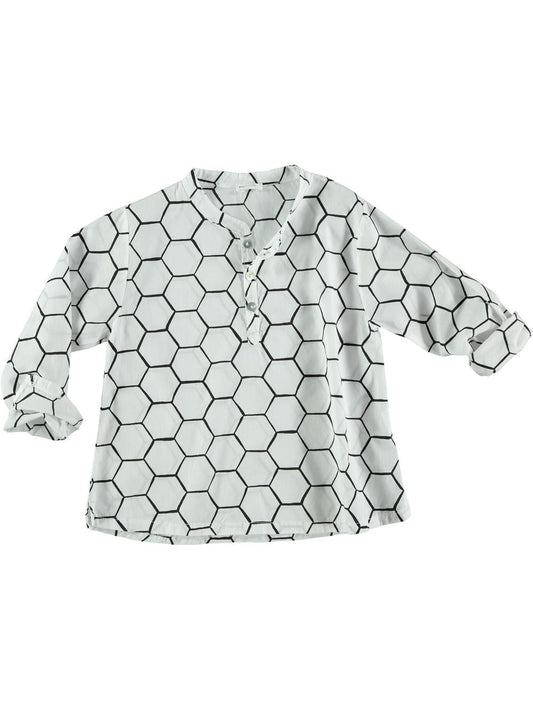 MAO SHIRT WITH GRAY FACES AND BALLOONS PRINT