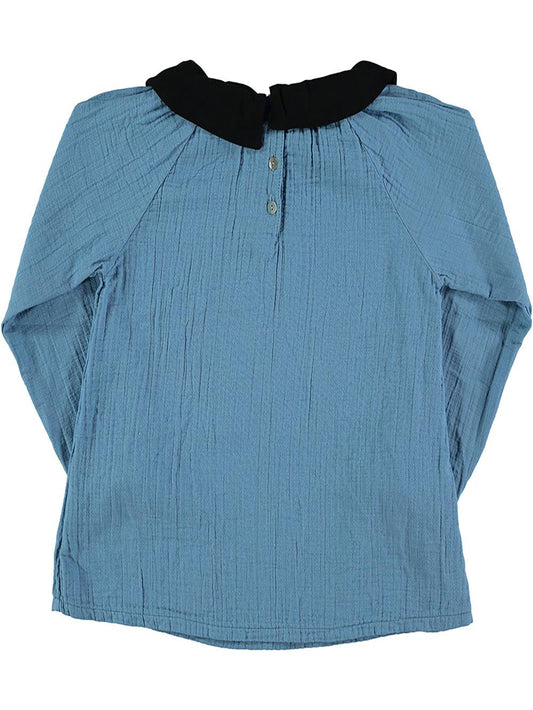 BLUE SHIRT WITH BLACK COLLAR