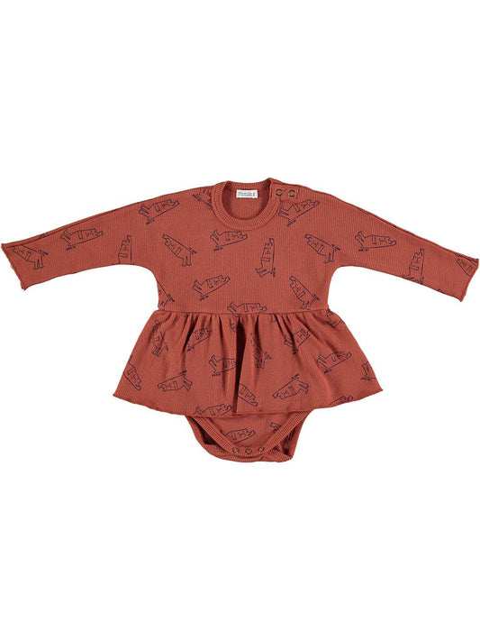 RED LONG SLEEVE BODY DRESS WITH SIESTA PRINT
